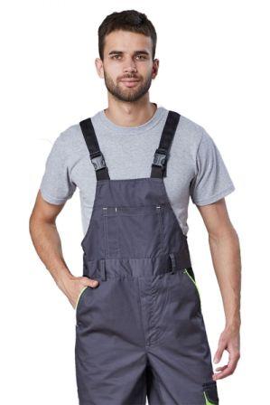 Типовой полукомбинезон для теплого времени года состоит из летних рабочих брюк и передника, которые совмещены в одном предмете одежды с плечевыми лямками для фиксации. Длину ремней можно увеличивать или уменьшать, в зависимости от антропометрических особенностей работников.